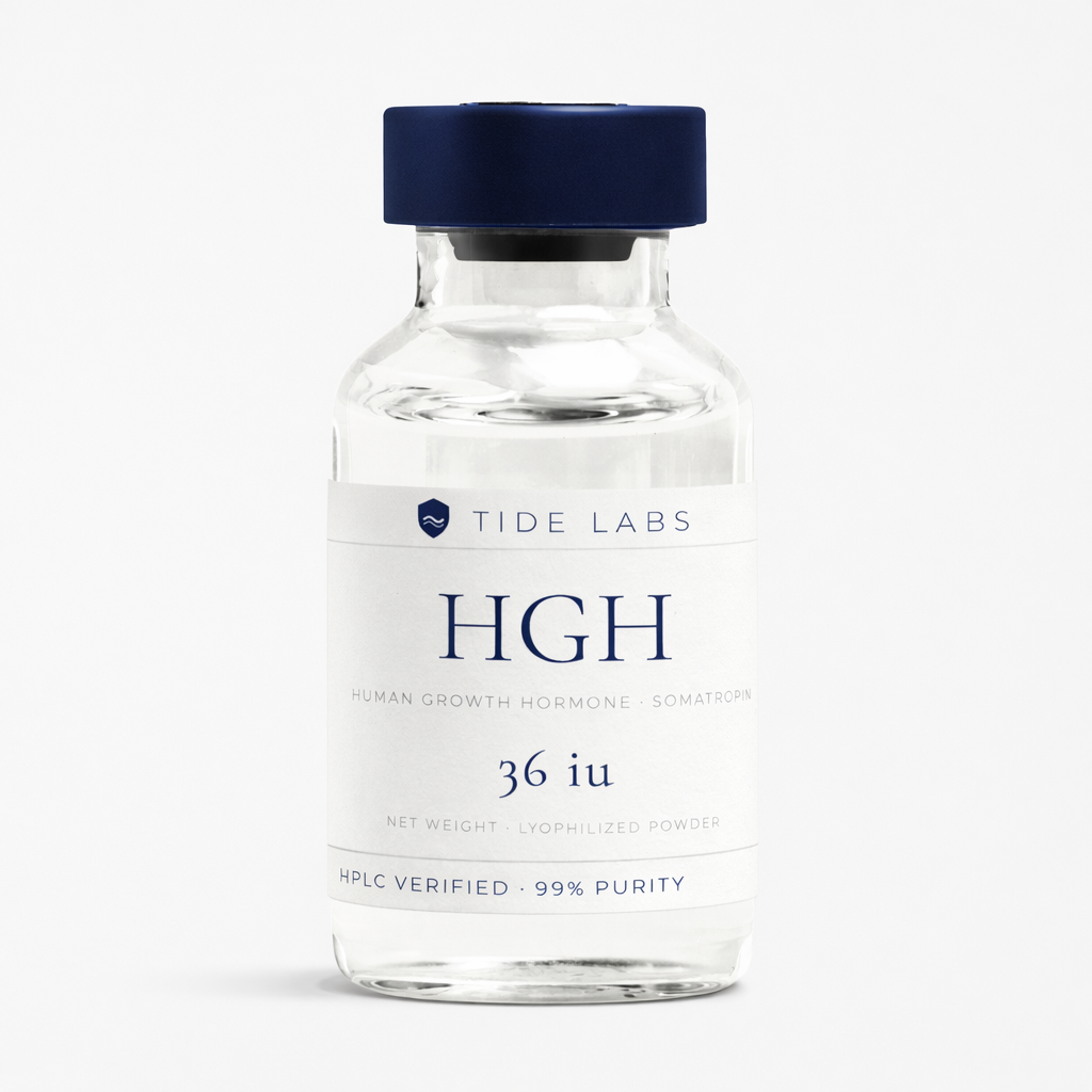 High-purity HGH 36iu supplied in a sealed vial. For Research Use Only (RUO).